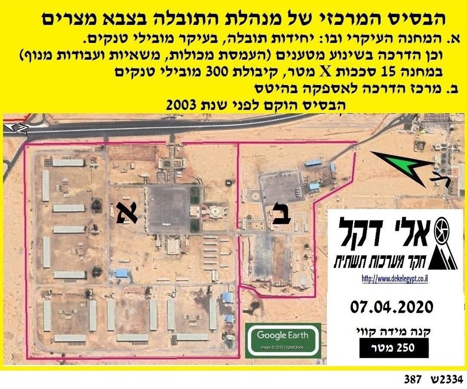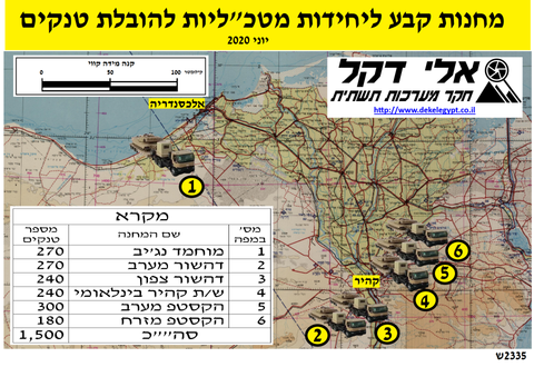 מחנות אלה נוספים על מחנות בקיבולת של כ־750 מובילים שהם חלק מהתשתית הקיימת זה כבר (מאז ראשית המאה ה־21), ובסך הכול קיימת במצרים תשתית (כפי שמוכר לי) של כ־1,500 מובילי טנקים, המאורגנים כיחידות תובלה מטכ"ליות. נוסף על היחידות המטכ"ליות יש ביחידות השדה עוד 100 מובילי טנקים לפחות,[1] וסדר הכוחות המצרי מונה כ־1,600 מובילי טנקים. במצרים קיימת רשת ענפה של מסילות ברזל שיכולה גם היא לנייד אמל"ח ואספקה עבור הצבא. במלחמת ששת הימים היו הרכבות האמצעי העיקרי לתובלת הטנקים לסיני. גם במלחמת יום הכיפורים עשה צבא מצרים שימוש נרחב באפשרות שינוע זו.