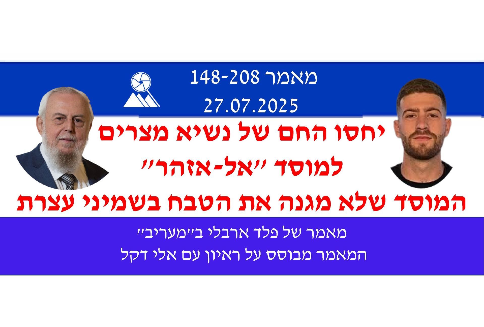 מאמר של מר פלד ארבלי שפורסם באתר "מעריב אונליין". המאמר עוסק ביחסו של נשיא מצרים למוסד הדתי העליון במצרים – מוסד אל-אזהר. המאמר מבוסס על ראיון שטיים מר פלד עם סא"ל (בדימוס) אלי דקל-דליצקי